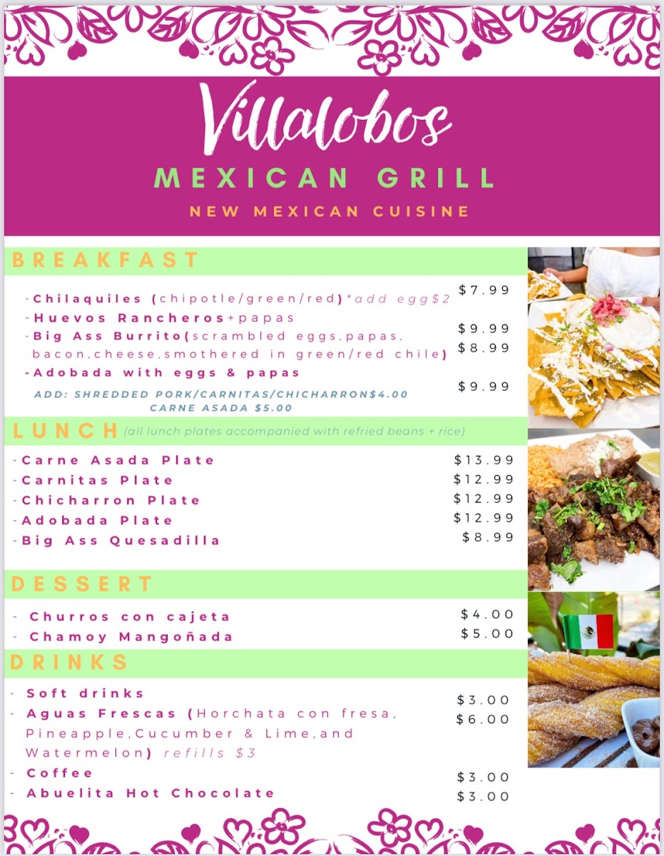 If you're craving authentic Mexican flavors, look no further than the delicious offerings on the Hacienda Villalobos Mexican Grill Menu. Nestled in the heart of Albuquerque, this vibrant spot brings together the rich traditions of Mexican cuisine with a modern twist. From sizzling fajitas to mouth-watering enchiladas, each dish is crafted with fresh ingredients and bold spices that will transport you straight to Mexico. Whether you're in the mood for a classic taco, a savory burrito, or something more adventurous, there’s something for everyone here. Every bite feels like a celebration of flavor, with options that cater to all tastes. The menu perfectly captures the warmth and soul of Mexican cooking, making Hacienda Villalobos a go-to destination for anyone looking to enjoy a hearty meal in a cozy, welcoming atmosphere.